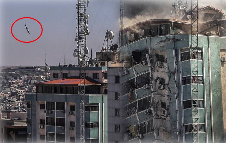Τον γύρο του κόσμου κάνουν οι εικόνες από το χτύπημα του ισραηλινού στρατού που βομβάρδισε και ισοπέδωσε το κτίριο 13 ορόφων, όπου στεγάζονταν τα κεντρικά γραφεία του τηλεοπτικού δικτύου του Κατάρ Al-Jazeera και του αμερικανικού πρακτορείου ειδήσεων Associated Press (AP) στη Λωρίδα της Γάζας.