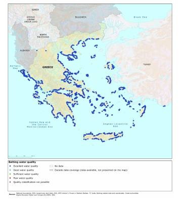 Σύμφωνα με την ετήσια έκθεση για τα ύδατα κολύμβησης του 2020 το 97,1% των περιοχών κολύμβησης στην Ελλάδα χαρακτηρίζεται ως «άριστης ποιότητας», έναντι 83% που αποτελεί τον μέσο όρο της Ευρωπαϊκής Ενωσης