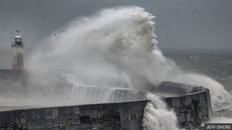 Το επιβλητικό «πρόσωπο» του Θεού της Θάλασσας συνέλαβε ο φωτογράφος του BBC Τζεφ Όβερς στο Newhaven την Τρίτη. Έβγαλε τη φωτογραφία την ώρα που τα κύματα έπεφταν πάνω στον τοίχο του λιμανιού κατά τη διάρκεια της καταιγίδας.