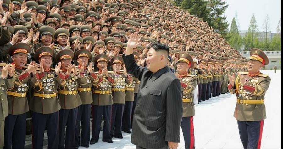 Στις νέες φωτογραφίες που κάνουν το γύρο του κόσμου, ο ισχυρός άνδρας της Πιονγιάνγκ εμφανίζεται να χαιρετάει ένα πλήθος με ενθουσιώδεις αξιωματικούς του στρατού και φαινεται να έχει χάσει βάρος γύρω από τη μέση και το πρόσωπό του με το σήμα κατατεθέν κοστούμι του Μάο που φοράει να είναι πάνω του ιδιαίτερα φαρδύ.