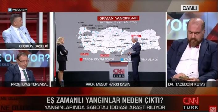 Μιλώντας σε εκπομπή του CNN Turk, ο Τζασίν αναφέρθηκε στις φονικές πυρκαγιές που βρίσκονται σε εξέλιξη στην Τουρκία, κατηγορώντας την Ελλάδα πως βρίσκεται πίσω από αυτές.