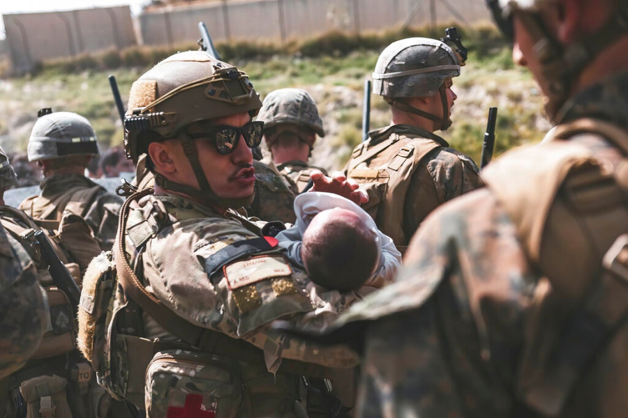 Χιλιάδες απελπισμένοι Αφγανοί, αλλά και ξένοι υπήκοοι, βρίσκονται στις εισόδους του αεροδρομίου της πρωτεύουσας θέλοντας να εγκαταλείψουν τη χώρα. Τα συγκλονιστικά καρέ αποτυπώνουν απεγνωσμένες μάνες να παραδίδουν τα παιδιά τους σε στρατιώτες, τουλάχιστον να γλιτώσουν αυτά και να έχουν μέλλον, πεζοναύτες με βαρύ εξοπλισμό και όπλα, να κρατάνε στοργικά στην αγκαλιά τους μωρά και κάθε λογής εικόνες φόβου, απόγνωσης αλλά και ανθρωπιάς.