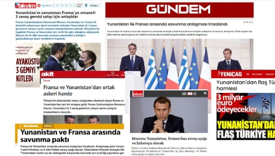 Υπενθυμίζεται ότι τα τουρκικά Μέσα Ενημέρωσης μετέδωσαν αμήχανα την είδηση της υπογραφής του αμυντικού συμφώνου Ελλάδας - Γαλλίας, που αλλάζει τα δεδομένα στην Ανατολική Μεσόγειο. Στα πρώτα δημοσιεύματα, στον ηλεκτρονικό τύπο, παρουσιάστηκαν τα όσα προβλέπει η συμφωνία καθώς και οι δηλώσεις του Έλληνα πρωθυπουργού Κυριάκου Μητσοτάκη και του Γάλλου προέδρου Εμανουέλ Μακρόν. Δεν έλειπαν βέβαια και οι αναφορές, πως η συμφωνία στρέφεται, σύμφωνα με όσα ισχυρίζονται, κατά της Τουρκίας ή ειρωνικά σχόλια πως η Αθήνα παρέδωσε την άμυνα της χώρας στο Παρίσι.