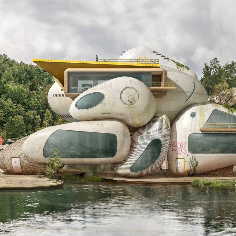 Αντλεί έμπνευση από την απομονωμένη καλύβα που σχεδίασε και έκτισε το 1914 ο Αυστριακός-Βρετανός φιλόσοφος Λούντβιχ Βίτγκενσταϊν στην απότομη όχθη της λίμνης Eidsvatnet στο Skjolden, δίπλα στο φιορδ Sognefjord. Σχεδιασμένα ως τροφή για σκέψη, τα αμφίβια καταλύματα λειτουργούν ως αντανακλάσεις του κόσμου, καθώς κατοπτρίζονται στα νερά.