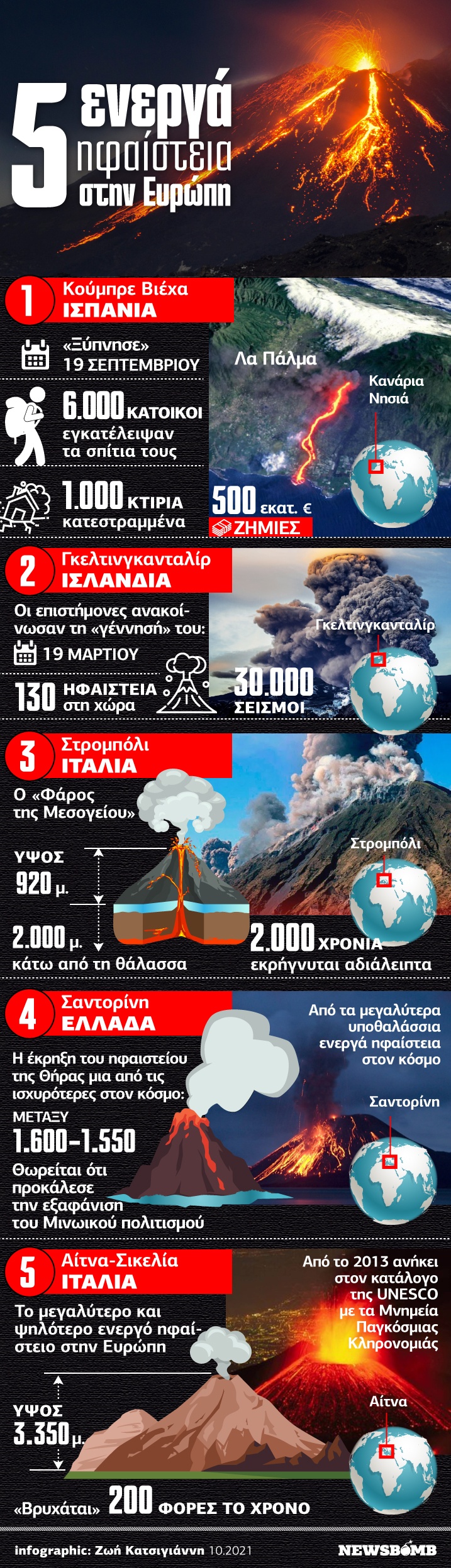 «Βουνά της φωτιάς»: Τα ενεργά ηφαίστεια στην Ευρώπη - Δείτε το Infographic του Newsbomb.gr