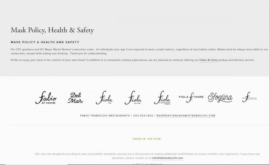 «Σύμφωνα με τις οδηγίες του CDC και το εκτελεστικό διάταγμα του Δημάρχου, Muriel Bowser, όλα τα άτομα άνω των 2 ετών πρέπει να φορούν μάσκα σε εσωτερικούς χώρους, ανεξάρτητα από το αν έχουν εμβολιαστεί.