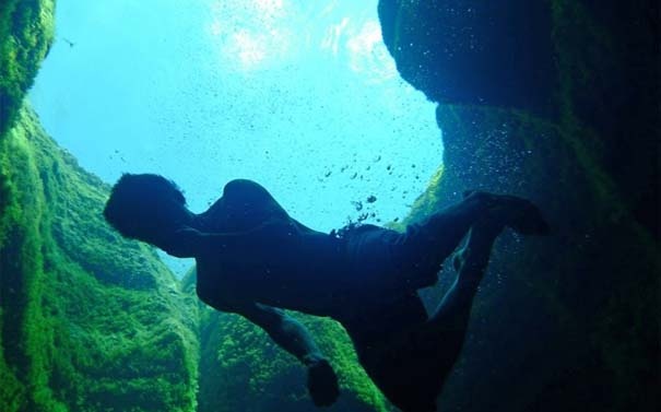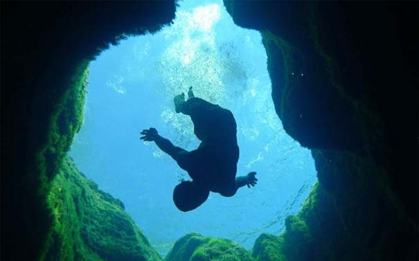 Άλλοι διασκεδάζουν βουτώντας στο νερό με φόντο την... άβυσσο, άλλοι καταδύονται για να εξερευνήσουν την εντυπωσιακή σπηλιά που κρύβει στα «σπλάχνα» της, σε μια βουτιά θανάτου.