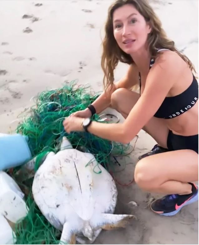 Η Ζιζέλ Μπούντχεν μοιράστηκε με τους εκατομμύρια followers της στο Instagram τη στιγμή που βοήθησε μια θαλάσσια χελώνα, η οποία ήταν παγιδευμένη σε δίχτυα. Το τοπ μόντελ εντόπισε το ζώο ενώ έκανε βόλτα σε παραλία. Η θαλάσσια χελώνα ήταν αναποδογυρισμένη στην άμμο, μπλεγμένη σε δίχτυα.