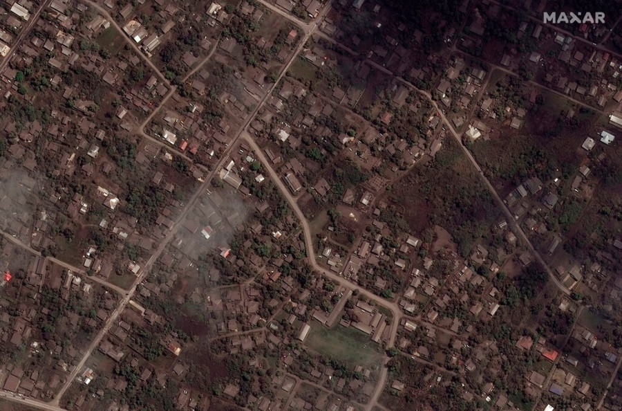 Δορυφορικές εικόνες που αναλύθηκαν από τον ΟΗΕ δείχνουν παρόμοιες σκηνές βιβλικής καταστροφής στα Kolomotua, Tongatapu και τα χωριά Fafaa και Kolofo'ou: ενώ ορισμένα κτίρια παραμένουν όρθια, άλλα φαίνεται οτι έχουν καταρρεύσει ενώ ολόκληρο το τοπίο είναι καλυμμένο με γκρίζα στάχτη.