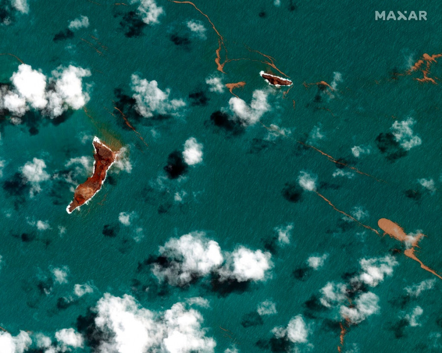 Οι πρώτες εικόνες μετά την έκρηξη του υποθαλάσσιου ηφαιστείου στην Τόνγκα και το τσουνάμι που προκάλεσε, δείχνουν νησιά καλυμμένα με στάχτη και αποκαλύπτουν ένα τεράστιο μέγεθος καταστροφής