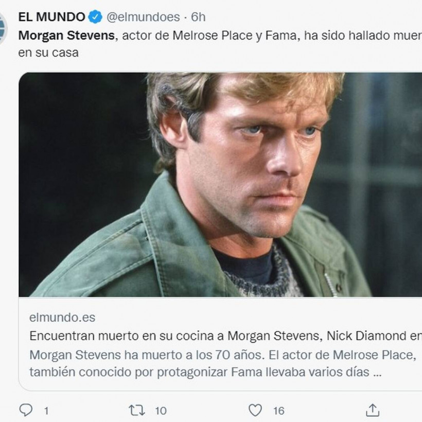 Πέθανε σε ηλικία 70 ετών ο ηθοποιός Μόργκαν Στίβενς, γνωστός από τη συμμετοχή του στο Melrose Place. Σύμφωνα με το TMZ, πηγή κοντά στον ηθοποιό ανέφερε είχε αρκετές ημέρες να τον δει ή να τον ακούσει, με αποτέλεσμα ένας γείτονας να καλέσει τις Αρχές προκειμένου να ελέγξουν αν είναι καλά.