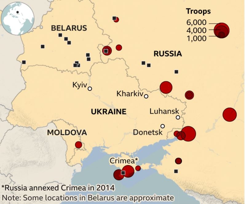 Όμως η Ρωσία αρνείται τις δυτικές κατηγορίες ότι σχεδιάζει εισβολή, σχεδόν οκτώ χρόνια αφότου προσάρτησε τη νότια χερσόνησο της Κριμαίας της Ουκρανίας και υποστήριξε μια αιματηρή εξέγερση στην ανατολική περιοχή του Ντονμπάς.