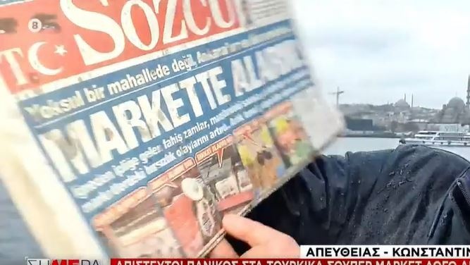 Η εφημερίδα Σοτζού με ρεπορτάζ της παρουσιάζει τις εικόνες ανέχειας που καταγράφονται στην Τουρκία. Μάλιστα, στο σημερινό της πρωτοσέλιδο φιγουράρουν τα αντικλεπτικά συστήματα στα τυριά, στον καφέ, στις σοκολάτες, στο ηλιέλαιο, στους ξηρούς καρπούς που έχουν βάλει τα σούπερ μάρκετ, καθώς τα προϊόντα έχουν ακριβύνει τόσο πολύ που ο κόσμος δεν μπορεί να τα αγοράσει.
