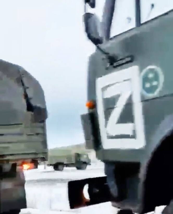 Βίντεο που αναρτήθηκαν στα μέσα κοινωνικής δικτύωσης δείχνουν εκατοντάδες ακόμη τανκς, οχήματα επικοινωνίας και εκτοξευτές πυραύλων να φθάνουν στα σύνορα. Πολλά από αυτά που καταγράφηκαν στην κάμερα έχουν ζωγραφισμένο το λατινικό γράμμα «Ζ» μέσα σε ένα μεγάλο λευκό τετράγωνο.