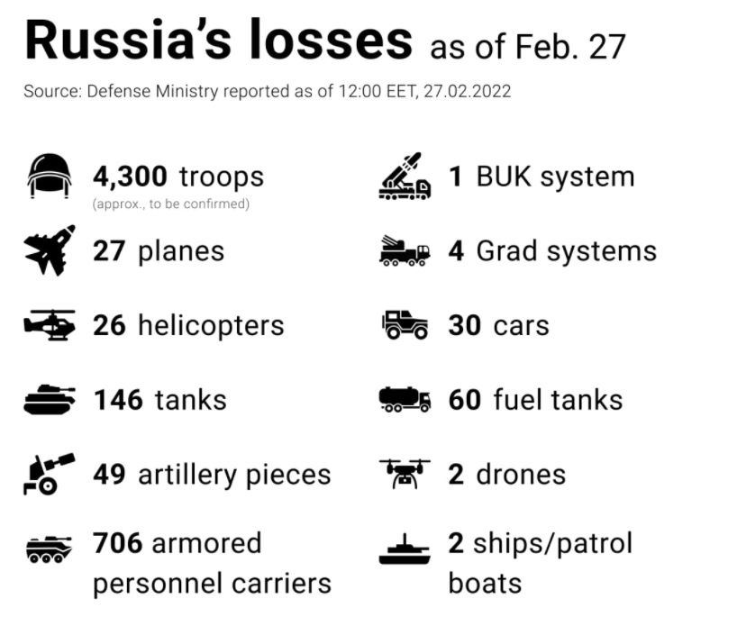 Βρισκόμαστε πλέον στο τέταρτο 24ωρο της ρωσικής εισβολής στην Ουκρανία η σημερινή ημέρα φαίνεται να είναι η χειρότερη για τους Ρώσους που είχαν τις μεγαλύτερες απώλειές τους.