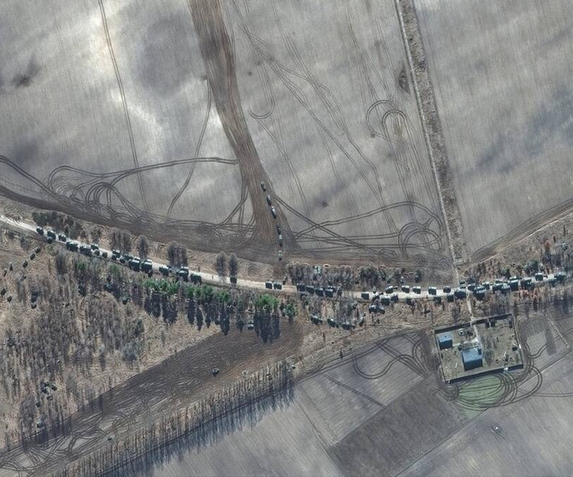 Εικόνες από δορυφόρους τη Δευτέρα κατέγραψαν ότι η ρωσική στρατιωτική οχηματοπομπή που κατευθύνεται προς το Κίεβο εκτείνεται σε μήκος 64 χιλιομέτρων, είναι, δηλαδή, πολύ μεγαλύτερη από ό,τι αναφέρθηκε νωρίτερα –όταν γινόταν λόγος για 27 χλμ.–, σύμφωνα με την αμερικανική ιδιωτική εταιρεία Maxar Technologies.