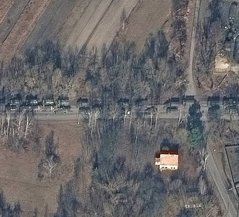 Η οχηματοπομπή περιλαμβάνει εκατοντάδες τεθωρακισμένα οχήματα, άρματα, αυτοκινούμενα πυροβόλα και οχήματα επιμελητειακής υποστήριξης και κατευθύνεται προς νότο, προς το Κίεβο, σύμφωνα με την εταιρεία.