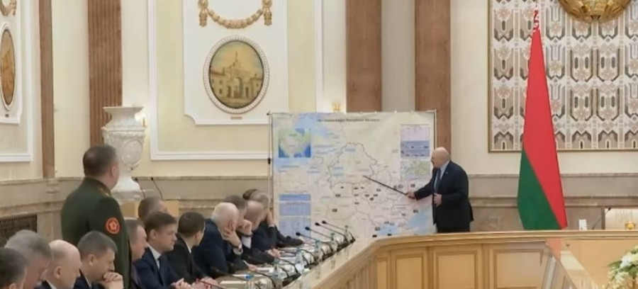 Ο δικτάτορας της Λευκορωσίας συναντήθηκε με το συμβούλιο ασφαλείας του, μπροστά από ένα χάρτη που φαίνεται να περιγράφει λεπτομερώς το σχέδιο μάχης της Ρωσίας στην Ουκρανία και το πλάνο για την κατάληψη βασικών πόλεων.