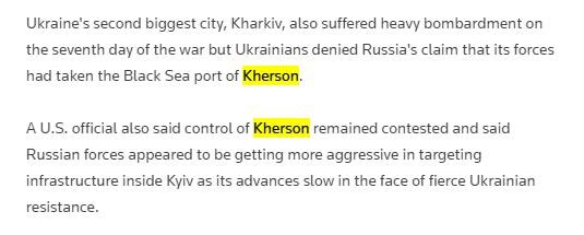 Η μάχη για το Κίεβο δείχνει να βρίσκεται ολοένα και πιο κοντά ενώ η Χερσώνα μεγάλο πλήγμα δέχεται και η Χερσώνα. Μάλιστα δημοσιεύματα ανέφεραν ότι ο δήμαρχος της πόλης επιβεβαίωσε την είδηση.