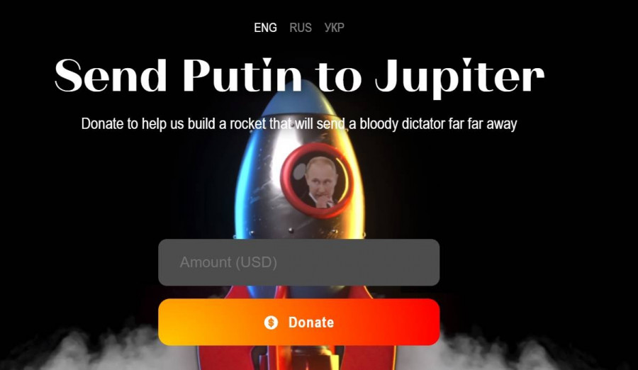 Στον ιστότοπο https://putina.net οι Ουκρανοί ζητάνε δωρεές προκειμένου να βάλουν στον Βλαντιμίρ Πούτιν σε πύραυλο και να τον εκτοξεύσουν στο μακρινό διάστημα. Για την επιχείρηση απαιτούνται 100 εκατομμύρια δολάρια: μέχρι στιγμής έχουν συγκεντρωθεί περισσότερα απο 2,5 εκατομμύρια. Το ελάχιστο ποσό δωρεάς είναι 2,99 δολάρια.