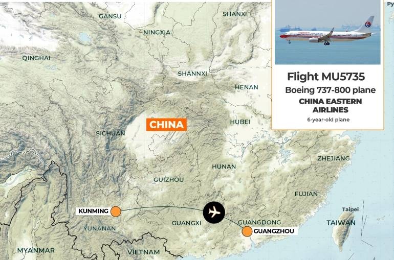 Η πτήση MU5735 της China Eastern Airlines υπέστη ένα καταστροφικό «γεγονός απώλειας ελέγχου» και βυθίστηκε πριν συντριβεί στην κινεζική πλαγιά, μετατρεπόμενη μια τεράστια βολίδα φωτός και προκαλώντας δασική πυρκαγιά ορατή σε δορυφορικές εικόνες της NASA.