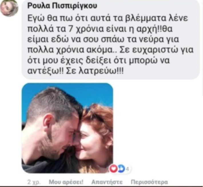 Ο πατέρας των παιδιών Μάνος Δασκαλάκης εκφράζει την απεριόριστη αγάπη του στο πρόσωπο της Ρούλας Πισπιρίγκου και εκείνη με την σειρά της ανταποδίδει.