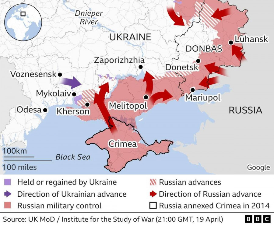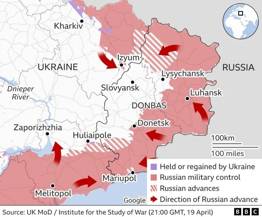 Υπενθυμίζεται ότι χθές, (σ.σ.Τρίτη 20 Απριλίου), ο Ουκρανός πρόεδρος Βολοντίμιρ Ζελένσκι κατά τη διάρκεια διαγγέλματός του που μεταφορτώθηκε στην πλατφόρμα Telegram είπε: «Μπορούμε τώρα να επιβεβαιώσουμε ότι τα ρωσικά στρατεύματα άρχισαν τη μάχη για το Ντονμπάς, για την οποία προετοιμάζονταν εδώ και καιρό. Πολύ μεγάλο μέρος του συνόλου του ρωσικού στρατού είναι πλέον αφοσιωμένο στην επίθεση αυτή».