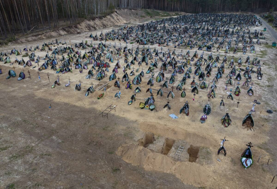 Οι τάφοι θα μπορούσαν να χωρέσουν έως και 9.000 νεκρούς, ανέφερε χθες το δημοτικό συμβούλιο της Μαριούπολης σε ανάρτησή του στην εφαρμογή ανταλλαγής μηνυμάτων Telegram. Ο δήμαρχος της Μαριούπολης απηύθυνε νέα έκκληση για «πλήρη εκκένωση» της πόλης της νότιας Ουκρανίας που η Ρωσία ισχυρίζεται ότι έχει καταλάβει στο σύνολό της εκτός από τη μεταλλουργία Azovstal, την οποία ο πρόεδρος Βλαντιμίρ Πούτιν διέταξε να αποκλειστεί.