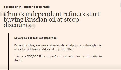 Νωρίτερα, σύμφωνα με τους Financial Times η Κίνα, έχει εξασφαλίσει… δυνατές εκπτώσεις για μεγαλύτερες προμήθειες πετρελαίου από τη Ρωσία, παρακάμπτοντας τις αγορές spot.