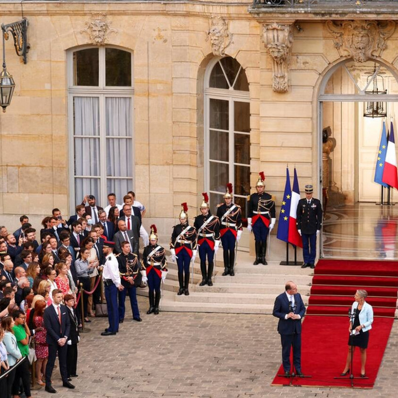 «Αγαπητή Ελιζαμπέτ Μπορν, κυρία πρωθυπουργέ», γράφει ο Εμανουέλ Μακρόν στο Twitter, καθορίζοντας τον μακρύ οδικό χάρτη για αυτήν την έναρξη της πενταετούς θητείας: «Οικολογία, υγεία, εκπαίδευση, πλήρης απασχόληση, δημοκρατική αναγέννηση, Ευρώπη και ασφάλεια». Η μεταβίβαση της εξουσίας έγινε στο τέλος της ημέρας, με τις καθιερωμένες ομιλίες του απερχόμενου πρωθυπουργού και της διαδόχου του.