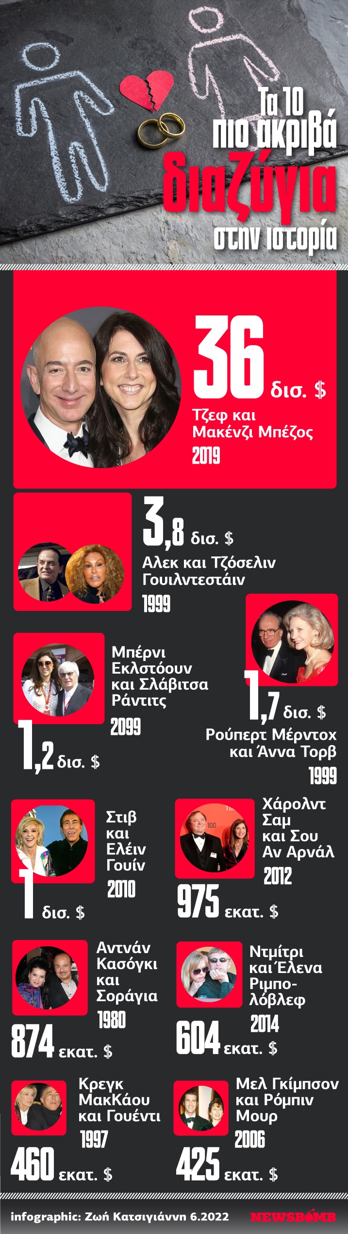 Απο τον Τζέφ Μπέζος στον Ρούπερτ Μέρντοχ: Tα πιο ακριβά διαζύγια στο Infographic του Newsbomb.gr