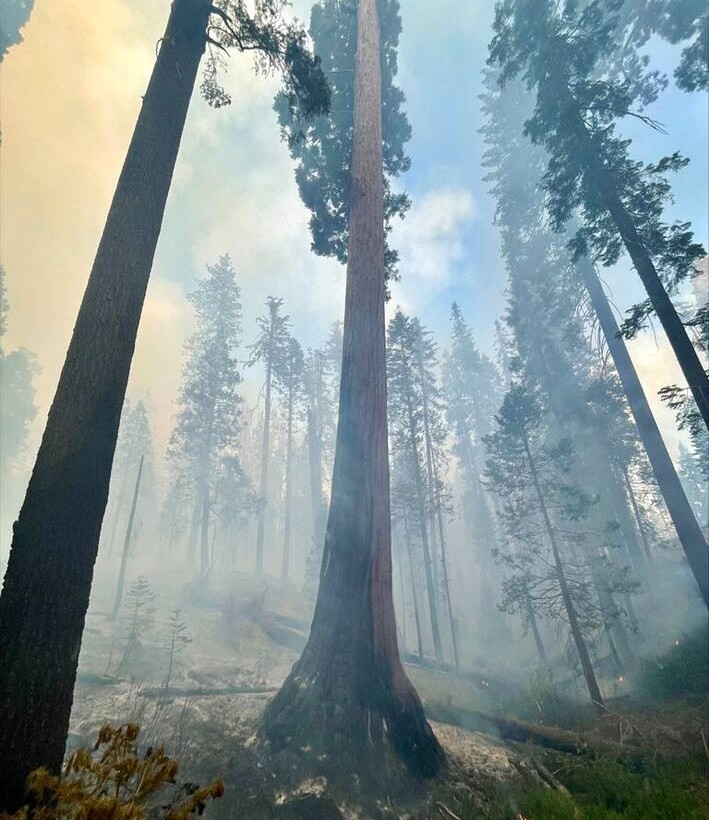 Οι πυροσβέστες εργάζονται σε δύσκολα εδάφη για να προστατεύσουν μερικά από τα μεγαλύτερα και παλαιότερα δέντρα κοκκινόξυλου, οπως αλλιώς λέγονται, στον κόσμο. Οι κάτοικοι και οι κατασκηνωτές έχουν απομακρυνθεί από την περιοχή ενώ ο πυκνός καπνός έχει επιδεινώσει την ποιότητα του αέρα και έχει συσκοτίσει τη γραφική θέα του πάρκου.