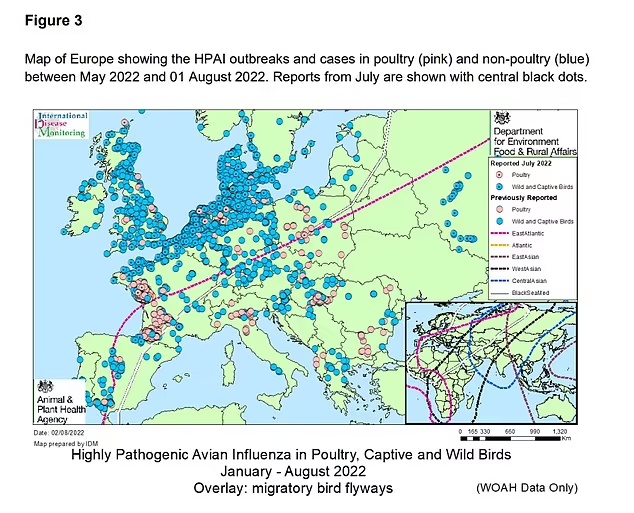 «Υπάρχουν αυξανόμενες ανησυχίες ότι, καθώς ο ιός εξαπλώνεται στα πτηνά θα μπορούσε να εξελιχθεί για να μολύνει ανθρώπους και να προκαλέσει μια παγκόσμια κρίση πιο θανατηφόρα από τον Covid», αναφέρει η Daily Mail.