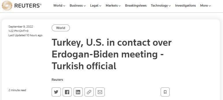 Ο Erdogan αναμένεται να επισκεφθεί την Ουάσιγκτον αργότερα τον Σεπτέμβριο, ισχυρίστηκε με τον αξιωματούχο. Οι δύο ηγέτες συναντήθηκαν τελευταία φορά στα τέλη Ιουνίου στο περιθώριο της συνόδου του ΝΑΤΟ στη Μαδρίτη, όπου η Τουρκία ήρε τελικά το βέτο της για την ένταξη της Φινλανδίας και της Σουηδίας παρά τη σφοδρή αντίθεση της Ρωσίας.