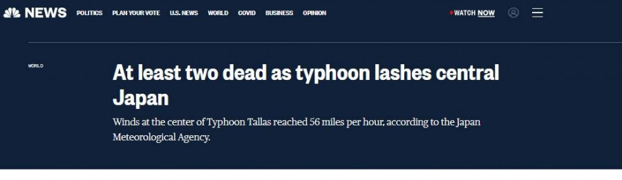 Η Ιαπωνία αντιμετωπίζει περίπου 20 τυφώνες ετησίως, από το καλοκαίρι ως το φθινόπωρο. Την περασμένη εβδομάδα 4 άνθρωποι έχασαν τη ζωή τους και 151 τραυματίστηκαν κατά το πέρασμα του τυφώνα Νανμαντόλ στο νοτιοδυτικό τμήμα της χώρας.
