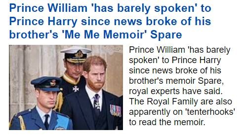Εν τω μεταξύ σύμφωνα με την Daily Mail ο πρίγκιπας Ουίλιαμ «έχει μιλήσει ελάχιστα» με τον πρίγκιπα Χάρι από τότε που κυκλοφόρησαν τα νέα για τα απομνημονεύματα του αδερφού του, σύμφωνα με Βρετανούς royal editors.