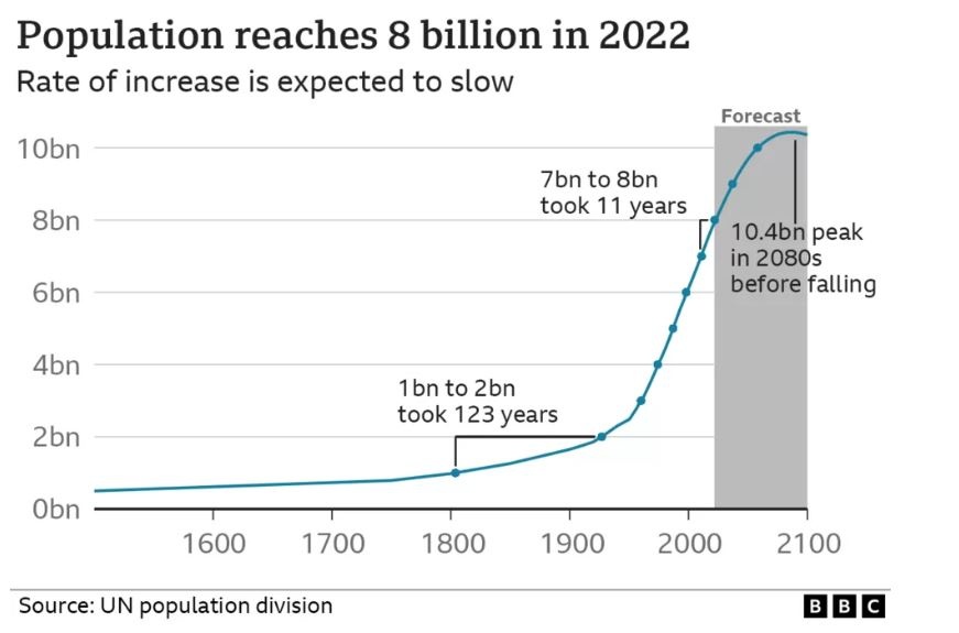 Μετά από ένα μεγάλο «κύμα» στα μέσα του 20ου αιώνα, η αύξηση του πληθυσμού ήδη επιβραδύνεται. Θα χρειαστούν 15 χρόνια για να φτάσει ο πλανήτης τα εννέα δισεκατομμύρια και ο ΟΗΕ προβλέπει οτι δεν αναμένει να «γίνουμε» 10 δισεκατομμύρια μέχρι το 2080.