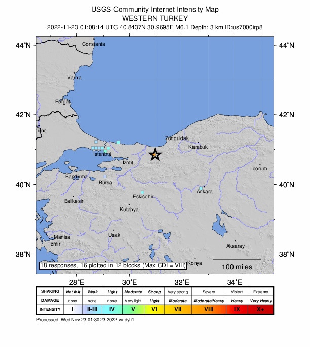 Σεισμός Τώρα: Ισχυρή σεισμική δόνηση μεγέθους 6 βαθμών της κλίμακας Ρίχτερ, σύμφωνα με την αυτόματη αναθεωρημένη λύση του Ευρωπαϊκού - Μεσογειακού Σεισμολογικού Κέντρου (EMSC), σημειώθηκε τα ξημερώματα της Τετάρτης (23/11), στις 03:08, σε περιοχή της βορειοδυτικής Τουρκίας