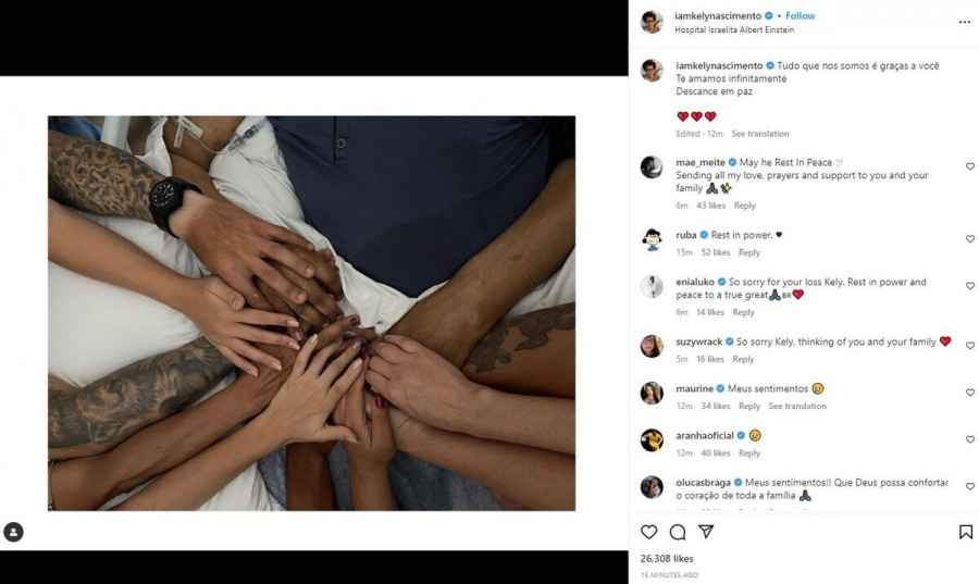 Η κόρη του, Κέλι Νασιμέντο, με ένα μήνυμα στο Instagram συγκίνησε στον αποχαιρετισμό του πατέρα της. «Όλα όσα είμαστε είναι χάρη σε εσένα. Σε αγαπάμε άπειρα. Αναπαύσου εν ειρήνη», έγραψε χαρακτηριστικά.