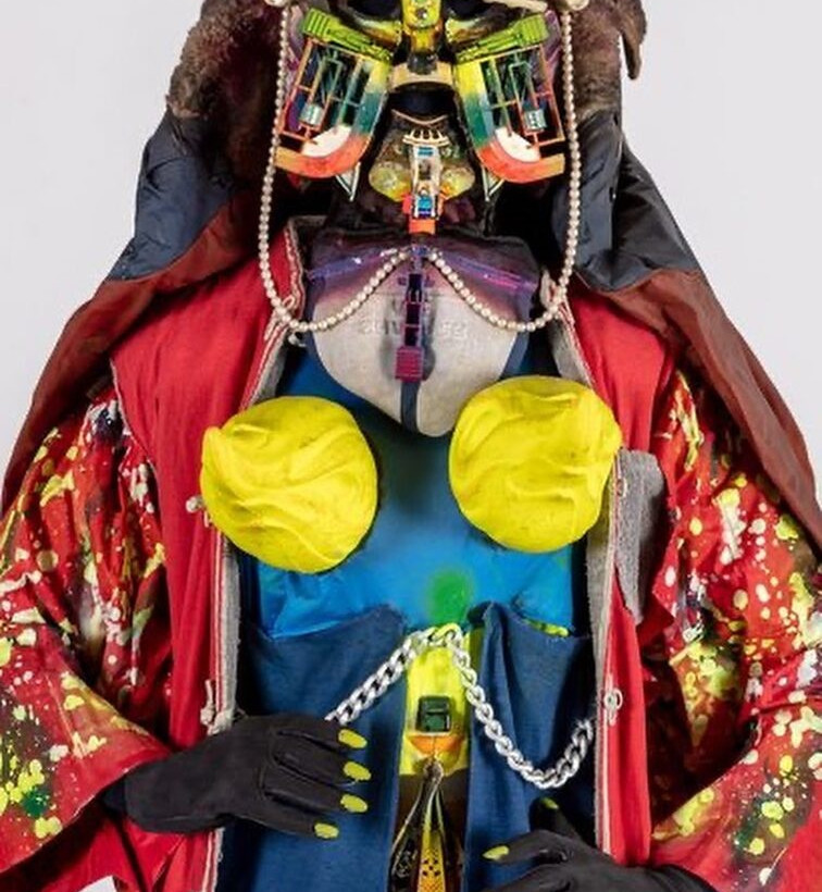 Περιτριγυρισμένα από πίνακες, στον εκθεσιακό χώρο επιβάλλουν την παρουσία τους οι ογκώδεις, εξωφρενικές στολές τις οποίες συχνά ο καλλιτέχνης φορούσε δημόσια και τις οποίες είχε βαφτίσει «Garbage Gods». Κάποιες από αυτές ζυγίζουν πάνω από 45 κιλά και όλες εκφράζουν την παρόρμηση του Rammellzee για πανοπλία και αγώνα κατά των συμβάσεων.