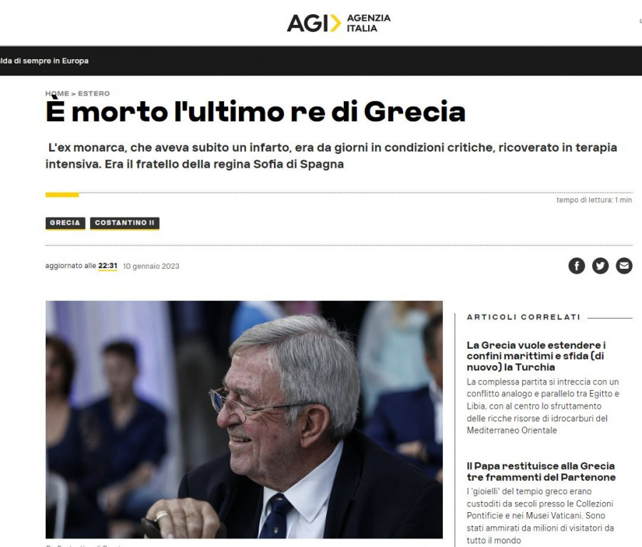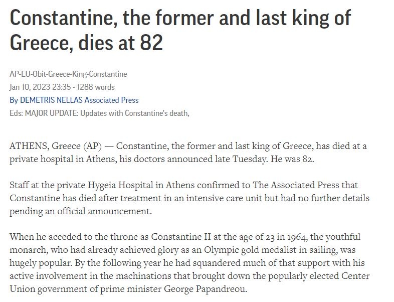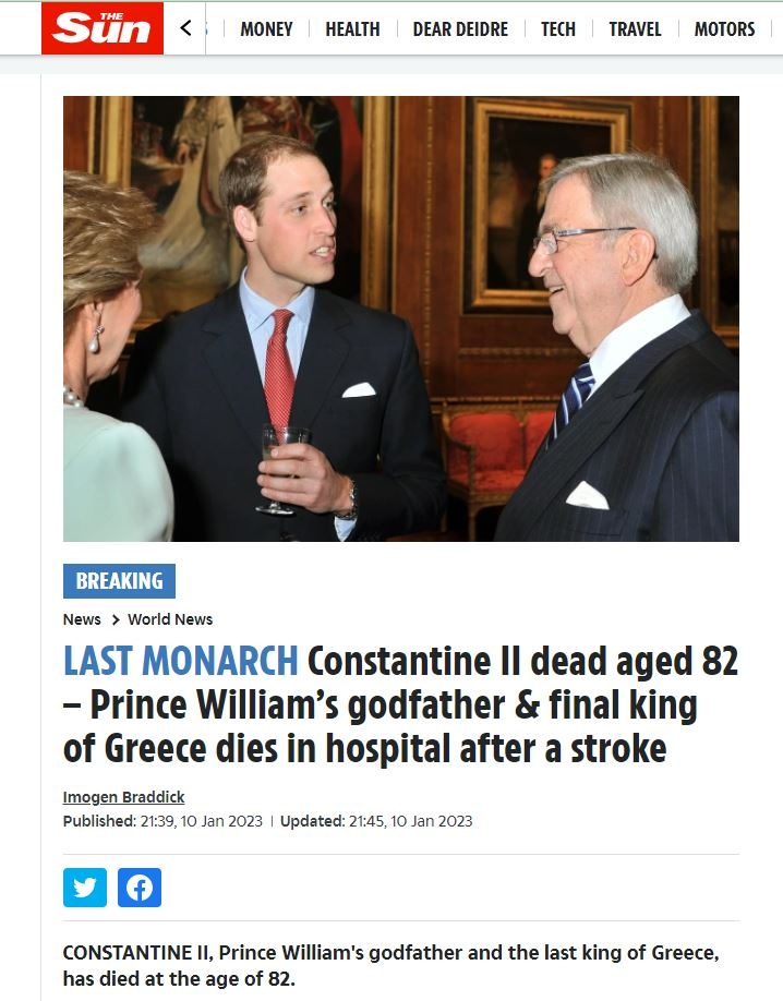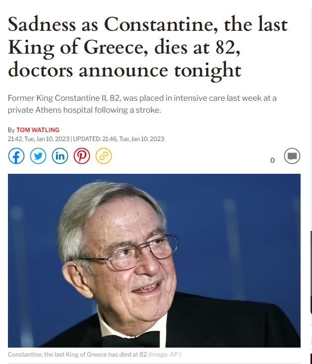 Ο διεθνής Τύπος για τον θάνατο του τέως βασιλιά Κωνσταντίνου
