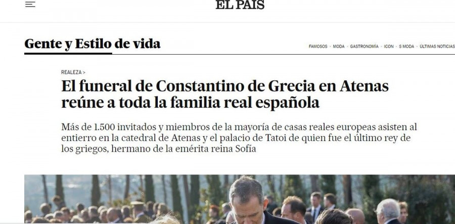 Η κηδεία του τέως βασιλιά της Ελλάδας, Κωνσταντίνου στην Αθήνα συγκέντρωσε όλη την ισπανική βασιλική οικογένεια, γράφει η ισπανική εφημερίδα.