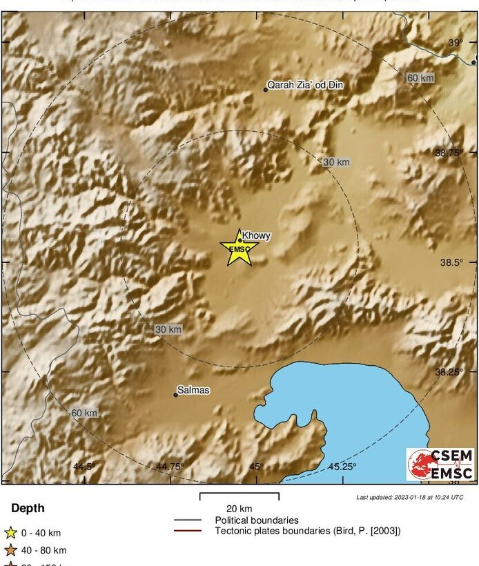 Μέχρι στιγμής δεν έχουν αναφέρει θύματα από τα ιρανικά μέσα – Κοντά στην πόλη Χόι το επίκεντρο του σεισμού