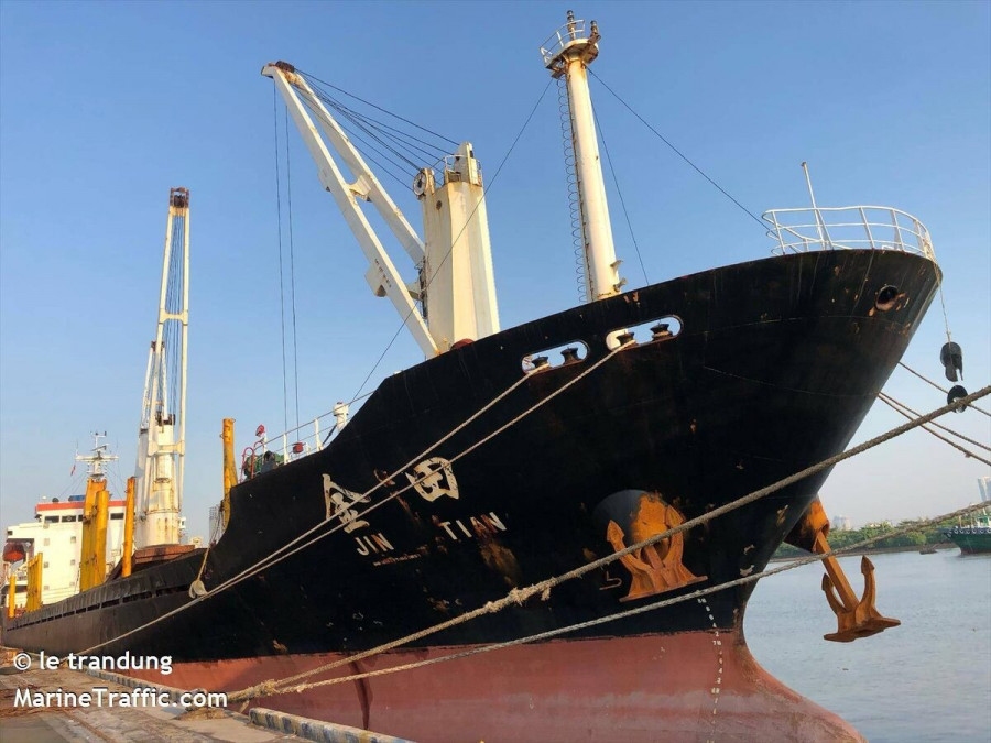 Το πλοίο που φέρει την ονομασία Jin Tian, είναι καταχωρισμένο στον νηογνώμονα του Χονγκ Κονγκ και το πλήρωμά του είναι πολίτες της Κίνας και της Μιανμάρ.