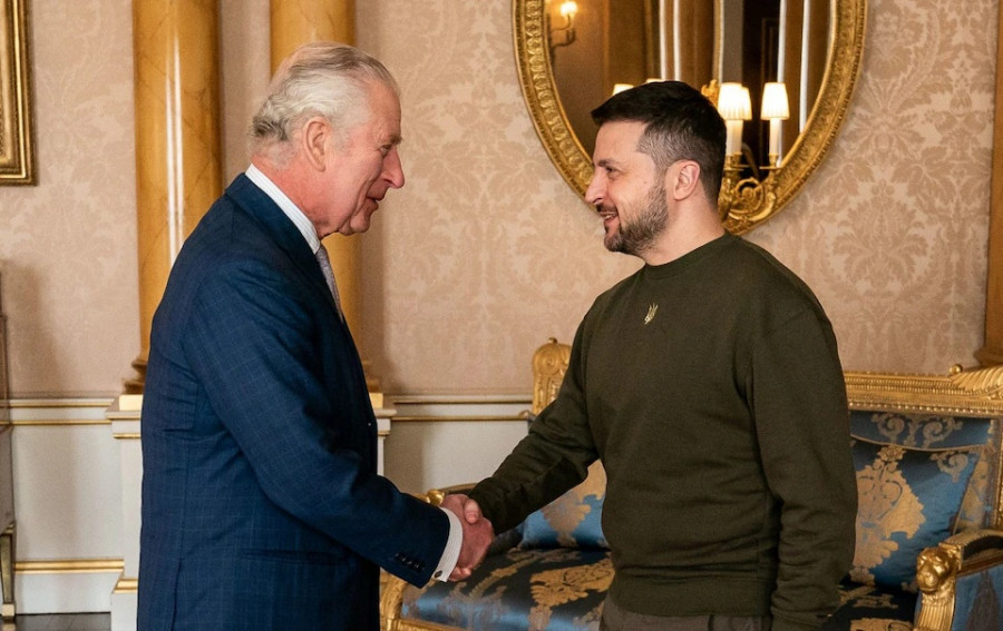 Στη συνέχεια ο πρόεδρος της Ουκρανίας βρέθηκε στο παλάτι του Μπάκινγχαμ, όπου είχε κατ ιδίαν συνάντηση με τον βασιλιά Κάρολο και μόλις αναχώρησε.