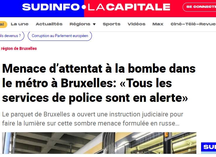 Η Ευρωπαϊκή Επιτροπή ανέφερε στην αστυνομία ότι έλαβε ένα email γραμμένο στα ρωσικά και έκανε λόγο για επίθεση στο μετρό, η οποία ήταν προγραμματισμένη για την Τετάρτη, 8 Μαρτίου, τονίζει μεταξύ άλλων δημοσίευμα της εφημερίδας «Le Soir»