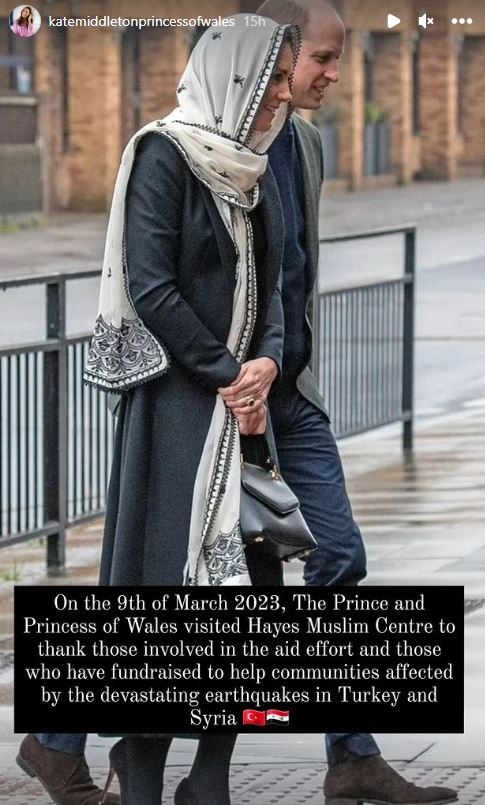 Στη δούκισσα του Κέιμπριτζ, Κέιτ Μίντλετον, έχουν πέσει τα φώτα της δημοσιότητας μετά από επίσκεψή της με τον Ουίλιαμ στο μουσουλμανικό κέντρο στο Λονδίνο. Το βασιλικό ζεύγος πήγε να ενημερωθεί για τις προσπάθειές τους να συγκεντρώσουν χρήματα για όσους επλήγησαν από τους φονικούς σεισμούς στην Τουρκία και τη Συρία.