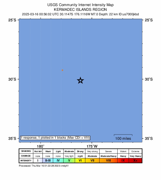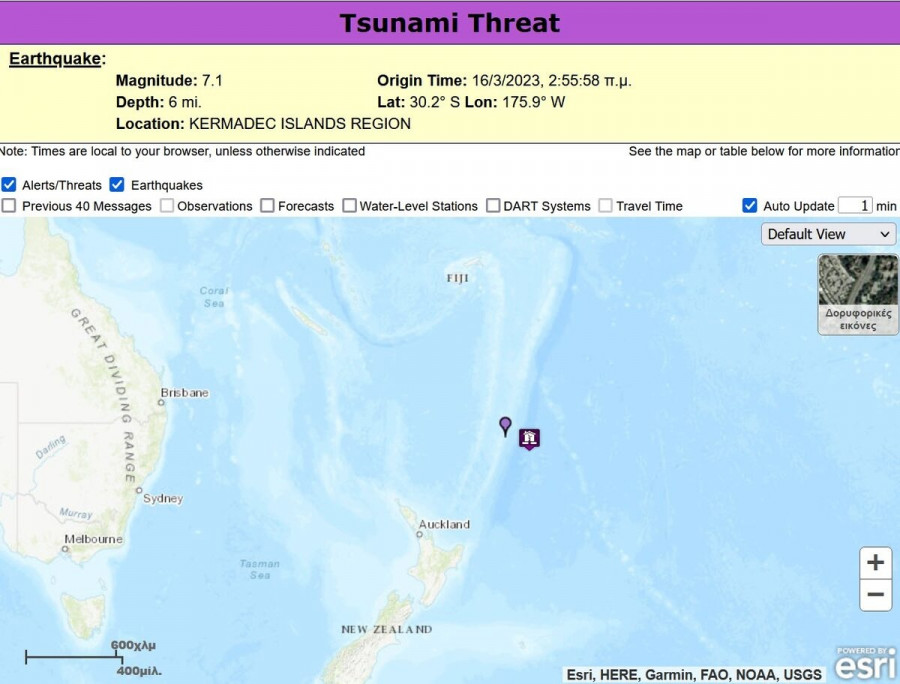 Ισχυρή σεισμική δόνηση μεγέθους 7 βαθμών της κλίμακας Ρίχτερ σημειώθηκε στις 02:56 (ώρα Ελλάδος), σε υποθαλάσσια περιοχή του Ειρηνικού Ωκεανού, βόρεια της Νέας Ζηλανδίας, στα νησιά Κερμάντετς.