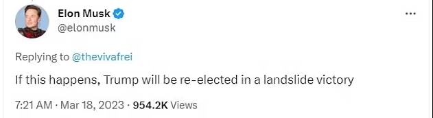 Ο διευθύνων Σύμβουλος της Tesla, Έλον Μασκ, υποστήριξε οτι ο πρώην πρόεδρος Ντόναλντ Τραμπ θα καταγράψει «συντριπτική νίκη» εάν του περάσουν χειροπέδες και συλληφθεί από την αστυνομία του Μανχάταν την Τρίτη.