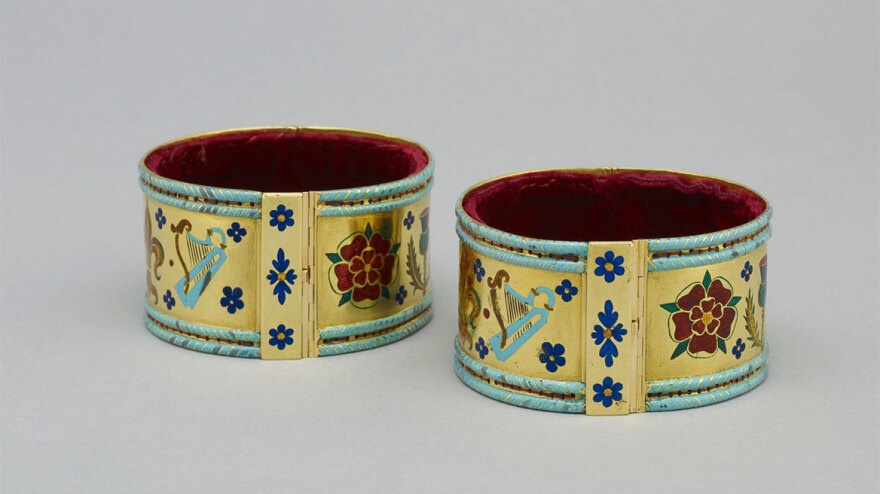 Τα Armills ή τα οβάλ χρυσά βραχιόλια είναι διακοσμημένα με σμάλτο champlevé και basse-taille με τα εθνικά εμβλήματα (τριαντάφυλλα, γαϊδουράγκαθο, fleurs-de-lis και άρπες) και σκούρο μπλε και κόκκινα σφαιρίδια ανάμεσα σε ανοιχτό μπλε σμάλτο. Είναι επενδεδυμένα με κόκκινο βελούδο. Αυτά τα Armills κατασκευάστηκαν το 1661 για να αντικαταστήσουν αυτά που χάθηκαν κατά την περίοδο της Κοινοπολιτείας (τα οποία ήταν κοσμήματα).
